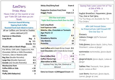 Zanders Beach Cafe is a unique cafe that combines the best of a little coffee shop and a beachside cafe. We offer breakfast, lunch, $15 blackboard special's as well as a wide selection of coffee, Açai, cold drinks and cabinet items. Whether you're looking for a quick bite or a relaxing meal, we have something for everyone.